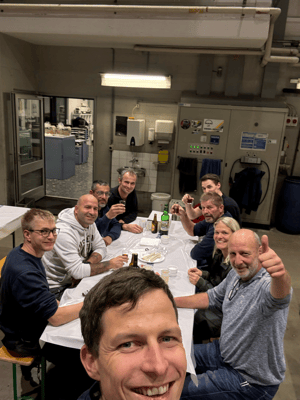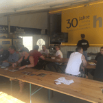 Beim gemütlichen Beisammensein bei uns in der Werkstatt feierten wir seinen Abschied.