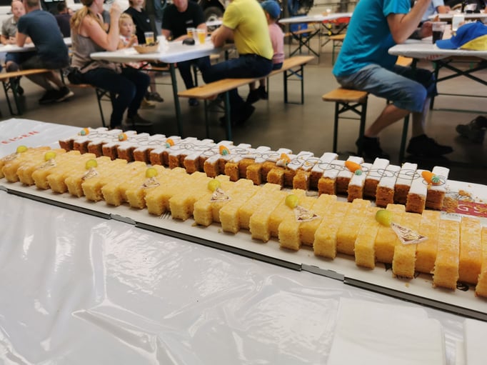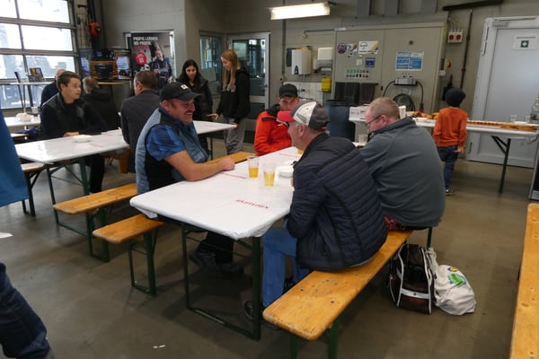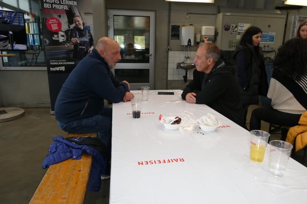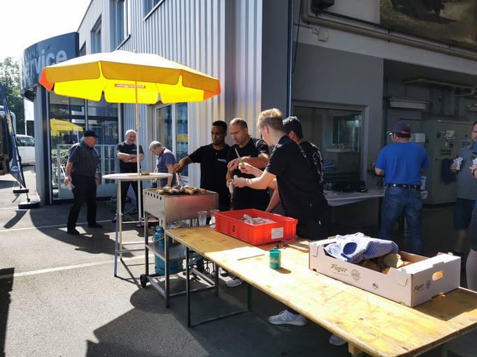 Mit gebratenen Güggeli und Getränken von unseren Kunden Brauerei Schützengarten AG und Mosterei Möhl AG war für das leibliche Wohl