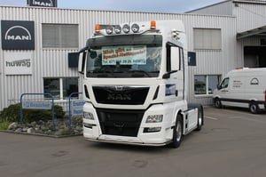 Unser Verkäufer Markus Rutz fuhr am Samstag mit einem MAN TGX 18.510 4x2 LL Demo Sattelschlepper mit OptiView (Spiegelersatzsystem) ein.