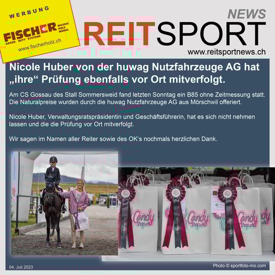 Wir gratulieren Cornel Enderli mit Ribero zum Sieg im R/N110 der von uns gesponserten Prüfung!
